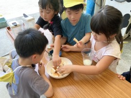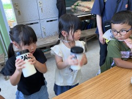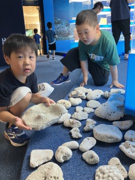 化石を触ってみたよ。硬かったり、ザラザラしていたよ。 |
